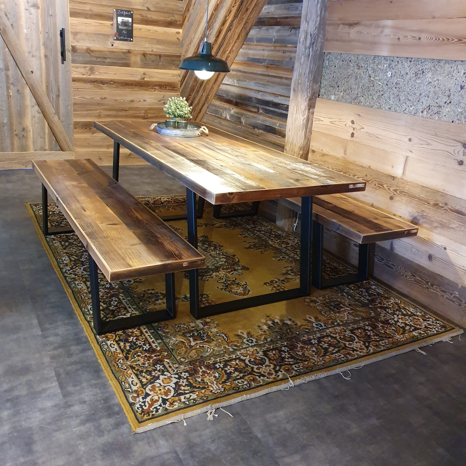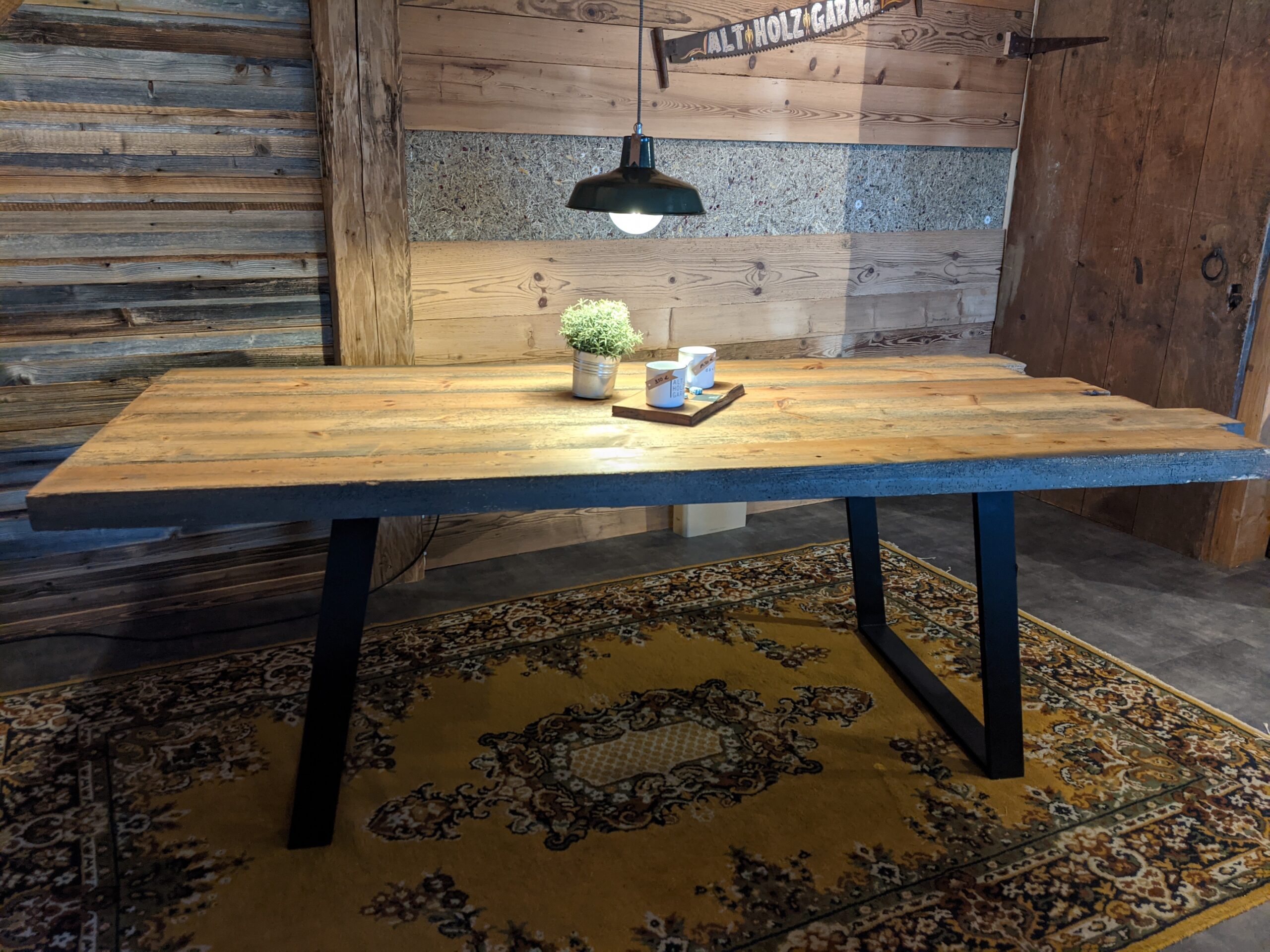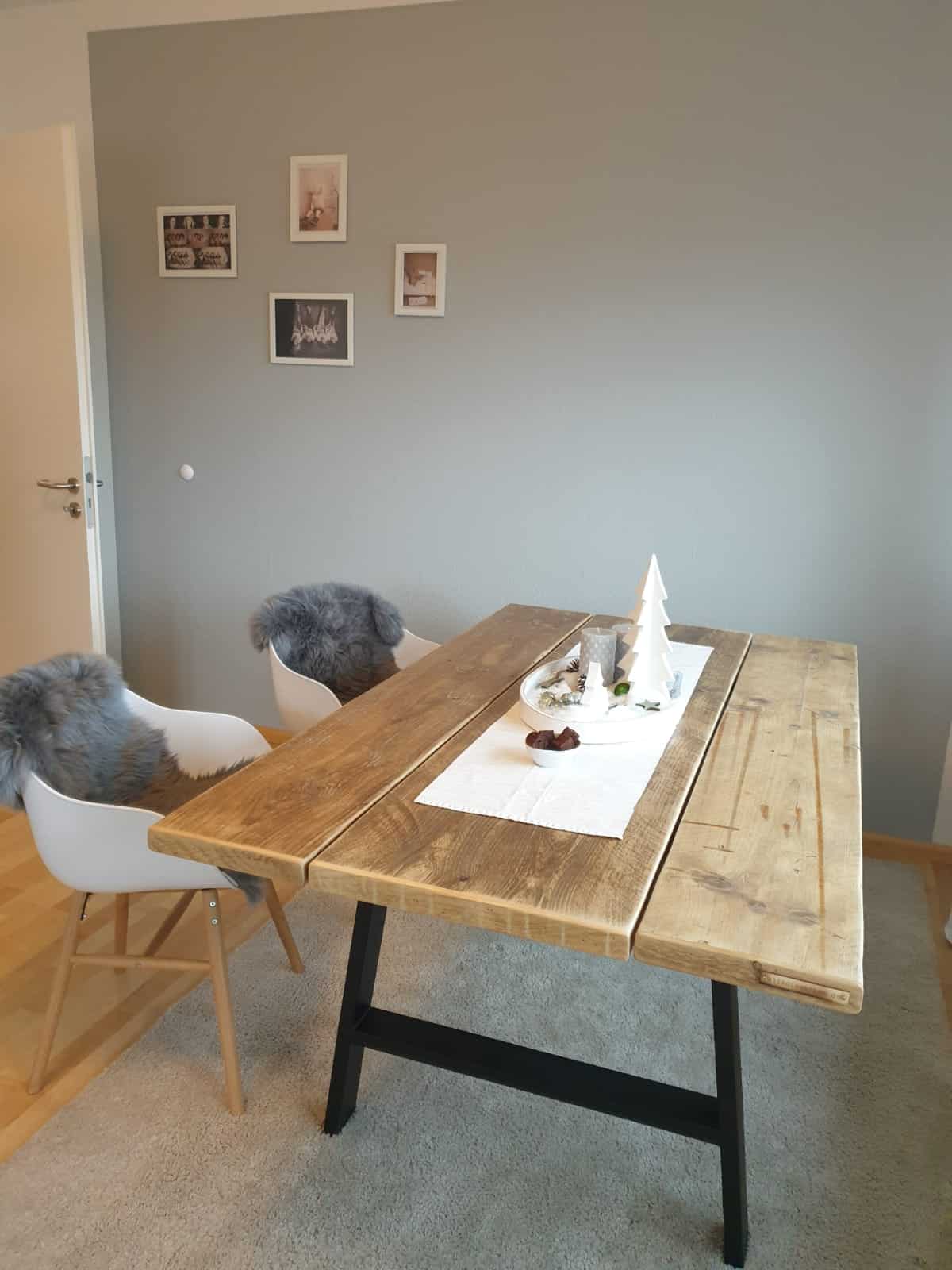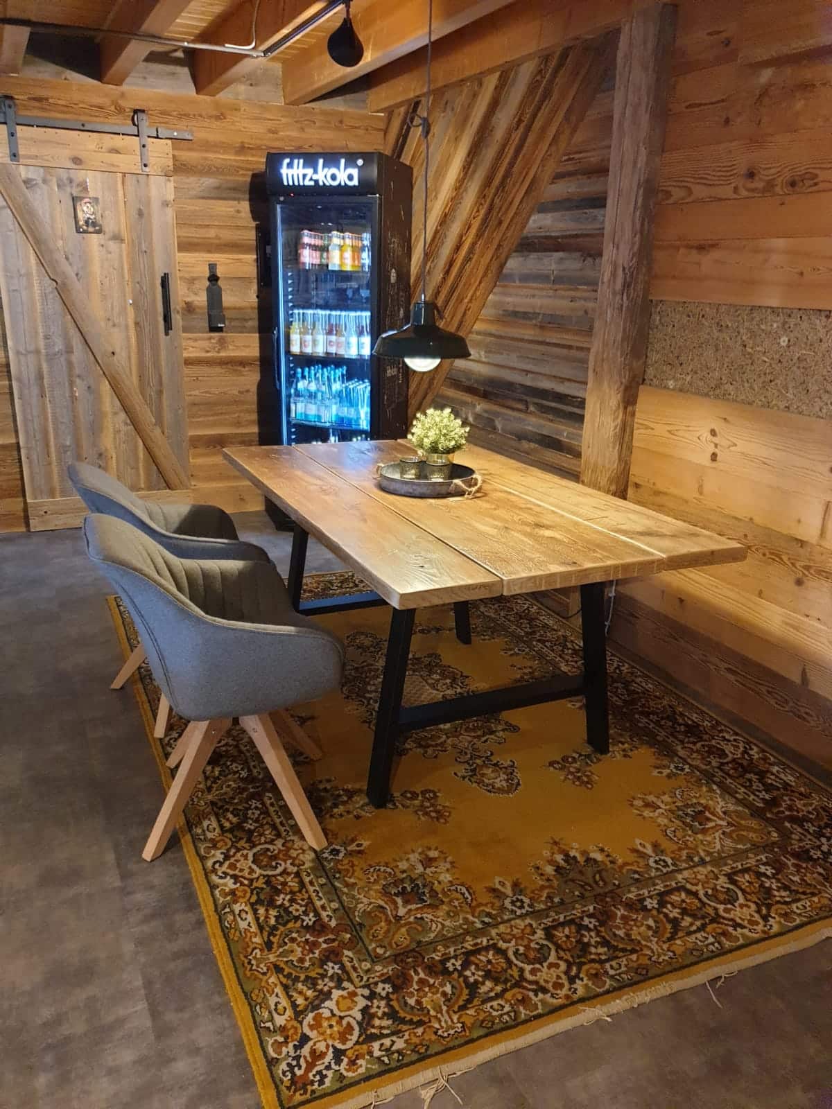 Unsere Tische sind aus Dielen gefertigt, die einst die Fassaden und Balken von Scheunen und Bauernhäusern in der Region waren